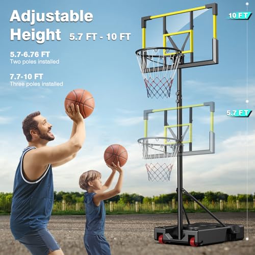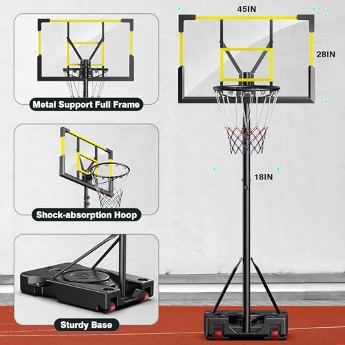 Basketball Hoop Outdoor, 10FT Adjustable Height, Portable Basketball Hoops Goal Court System w/ 45in Shatterproof Backboard for Kids Youth Adults