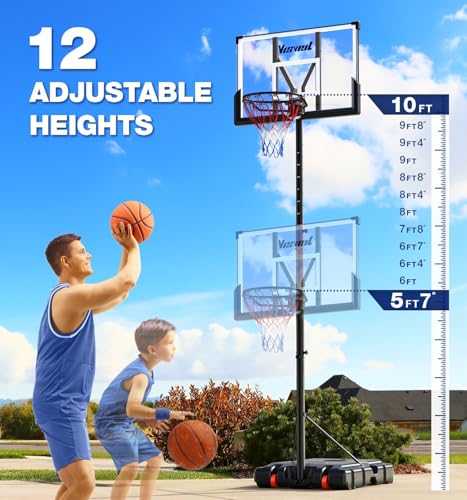 Basketball Hoop,Portable Basketball Hoop System for Outdoor, Adjustable Height 5.7-10ft 45in Backboard Basketball Goal for Kids Teen and Adult (Midnight Black)