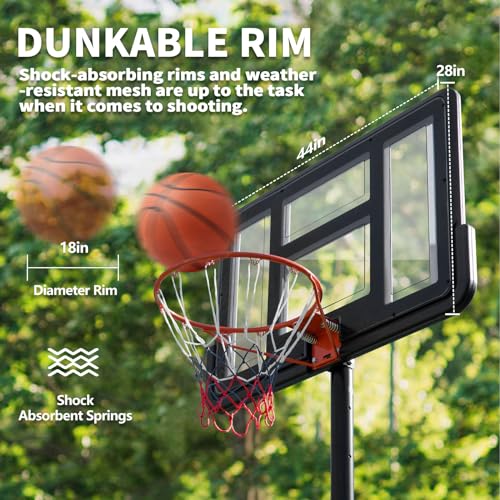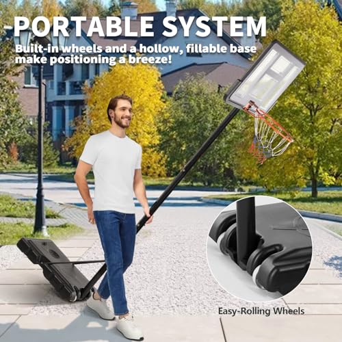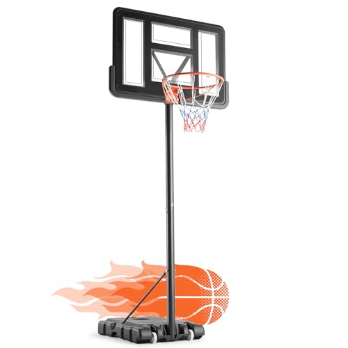 DUMOS 10FT Adjustable Height Portable Basketball Hoop Outdoor for Youth/Adult, 44 Inch Shatterproof Backboard w/Shock Absorbent Rim, Fillable Base, 2 Wheels for Swimming Pool/Indoor