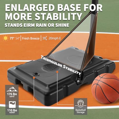 【Stable & Durable】The 10ft basketball hoop comes with a sturdy stand and base that ensures stability and durability . Furthermore , it is equipped with wheels that make the system easy to transport and streamline setup.