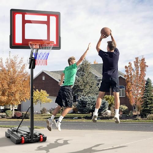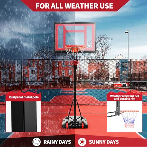 [Durable & Sturdy for All Weather Use]: Made from rustproof metal pole, strong backboard, wear-resistant net and durable rim, this basketball hoop system has good stability and durability for long lasting use. The powder-coated finish protects against the outdoor elements. This backboard system can handle any weather conditions whether in sunny days or rainy days.