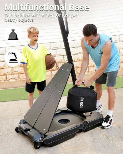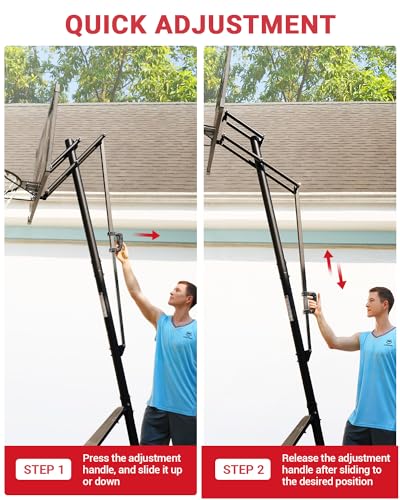 LASTING DURABILITY: The Outdoor Basketball Hoop has a Shatterproof 44″ upgraded backboard, made of high-strength materials. The shock-absorbing bumper rim can reduce the impact force caused by the collision. Support rod adopts Q195 thick steel designed