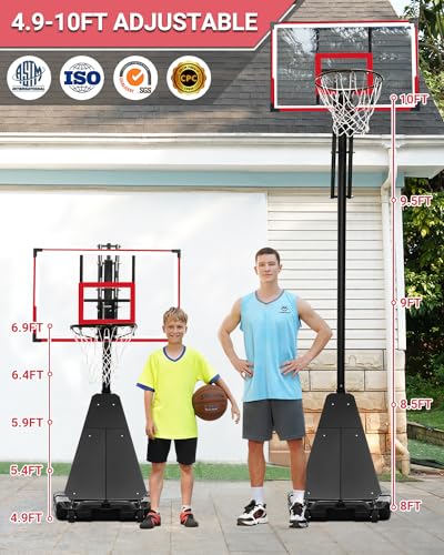 WIN.MAX Portable Basketball Hoop Quickly Height Adjusted 4.9-10ft Outdoor/Indoor Basketball Goal System with 44 inch Backboard and Wheels for Adults