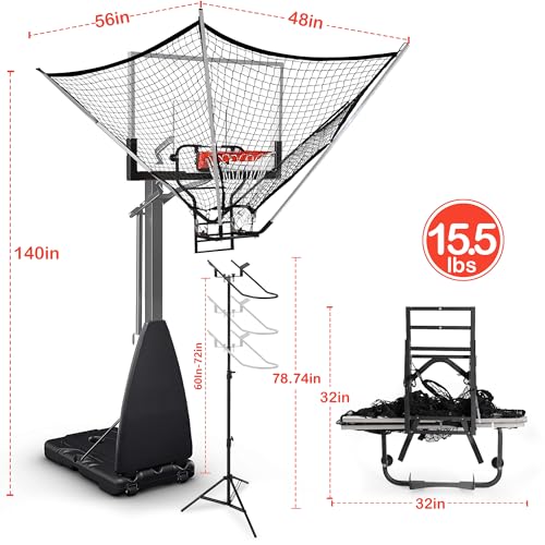 🏀【Lightweight and Easy to Install】: Basketball Rebounder weighs only 15.5 pounds and can be set up by one person in just 15 minutes. Perfect for a basketball shot trainer.