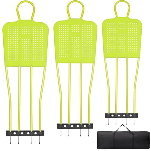 With Carry Bag – the soccer mannequin for training measures is 68.9 inches in total height (not nailed into the ground) ,Made to handle the punishment from a soccer ball , it have a carry bag Durable Material – Bright yellow PVC tubular frame; Hard plastic molded chest panels; UV protected , high visibility and recognition both during the day and night 4-inch ground spikes – it is solid steel to hold mannequin in place ,you can also apply rubber base to kick training Great training tool – soccer defender dummy for coaches, trainers and sports teams; Learn to pass, shoot, or dribble ,this mannequin enhances precision, power, and finesse in kick scenarios