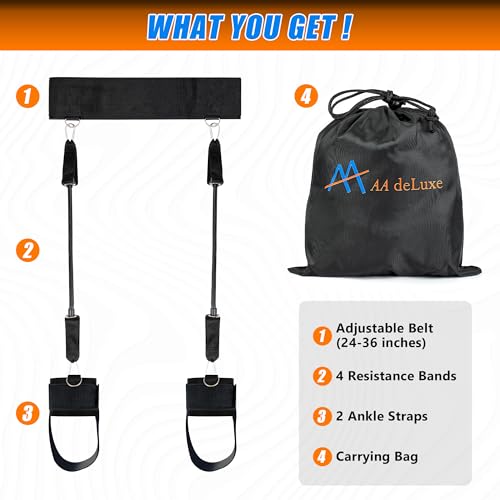WHAT YOU GET | This Vertical Jump Trainer exercise equipment set includes: Adjustable weist belt sizes 24-36 inch, 4x 12″ resistance bands of the highest quality of Malaysian latex and 2 akle straps. All together in a handy carrying bag, totall weight of the training set is less then 15oz.