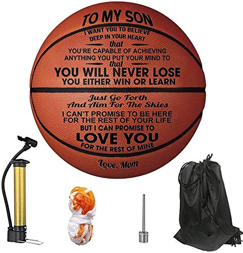 Specialized Gift: With meaningful information engraved on the ball surface, this basketball is the best birthday, holiday, graduation and Christmas gift idea for your son to cherish for a lifetime and to be encouraged every time he looks at it.