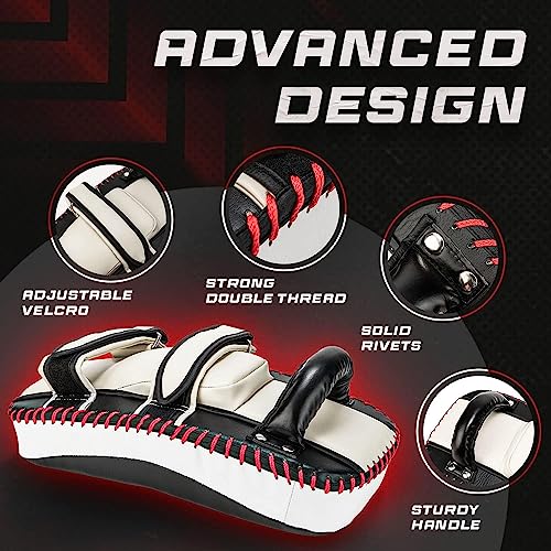 STRONG LACES JOINTS: Red double thread reinforces muay thai training pads structure, forming stable