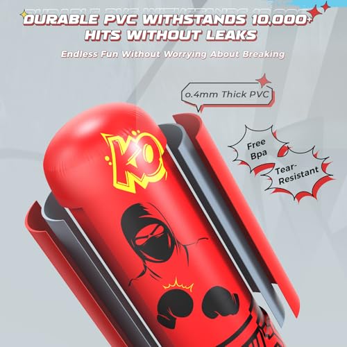 High-Quality & Safe: Made from high-quality, tear-resistant PVC, this heavy punching bag inflatable withstands up to 10,000 strikes without leaking or deforming, and the material is safe, it offers kids peace of mind for safe play