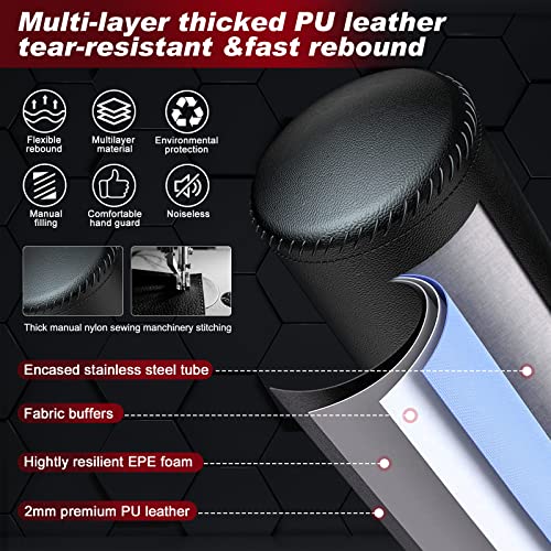 𝐏𝐫𝐞𝐦𝐢𝐮𝐦 𝐌𝐚𝐭𝐞𝐫𝐢𝐚𝐥𝐬 – The stainless steel tube uses a multi-layer protective structure, 2mm thickened PU leather striking surfaces, it is tear resistance. The highly resilient EPE foam and fabric buffers reduce recoil and protect your hand.