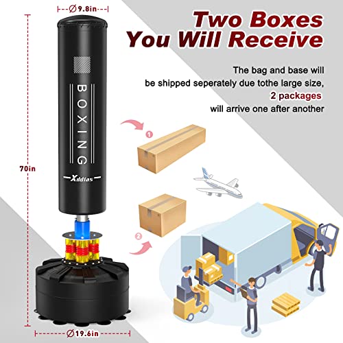 XDDIAS Punching Bag with Stand, 70” Freestanding Punching Bag for Adult, Heavy Boxing Bag with Suction Cup Base Kickboxing Bag for MMA Muay Thai Fitness