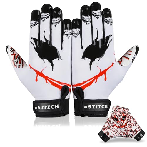 Football Gloves Jester face Adult & Youth Football Gloves Sticky Silicone Joker Football Receiver Gloves Football Receiving Gloves Youth Football Gloves Men Adult & Unisex