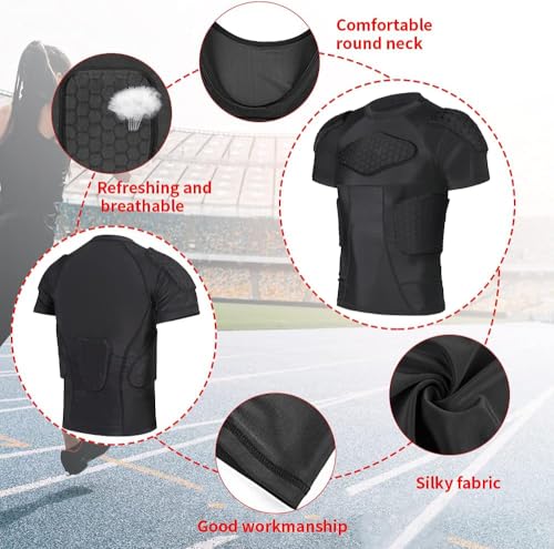 Mens Padded Compression Shirt Football Rib Protectors – Football Youth Padded Compression Shirt Protective Gear for Football – Chest Rib Protectors Chest Protector Padded Shirt