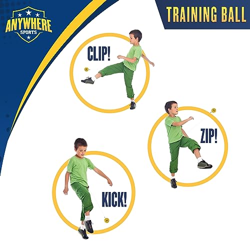 Anywhere Sports 3-in-1 Soccer/Football/Rugby Trainer – Kick, Touch, and Solo Practice with Adjustable Leash – Master Ball Control and Skills – Portable and Versatile Training Aid – Kids and Adults