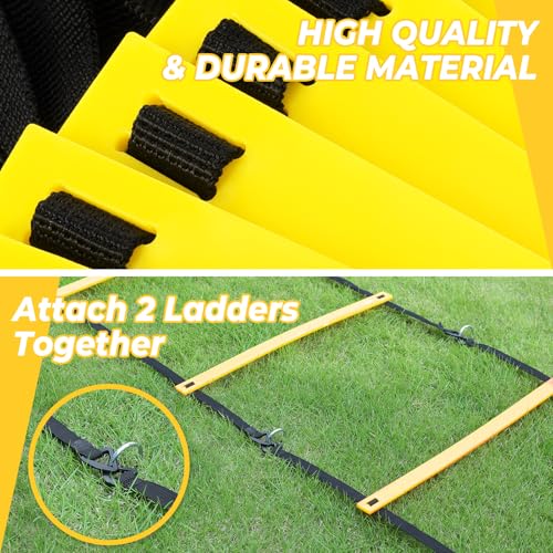 Sustainable Material: The speed training ladder Constructed of nylon and high quality PP material. The football kick trainer is made of neoprene with integration design, making it sustainable and elastic to withstand thousands of hits and kicks