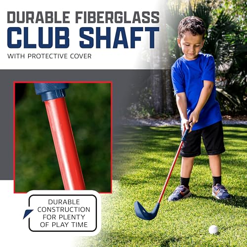 28″ GOLF CLUB: Sized for kids, with an oversized club head for easier hits.
