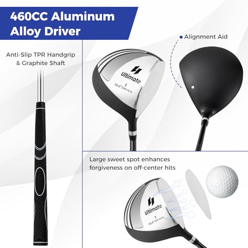【Successful Tee Shots & Final Goals】The aluminum driver is equipped with an 460cc oversize club head and large sweet spot to help you make tee shot accurately. Likewise, the heel/toe weighted putter is specially designed with an alignment aid to avoid off-center hits and make the final goals.