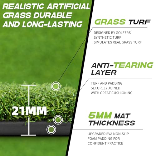 Premium golf driving mat: This golf practice mat uses EVA non-slip padding and an anti-tearing layer. Ensuring durable; stable and long-lasting performance with golf-hitting matt. A thickened practice mat is your indispensable golf training equipment