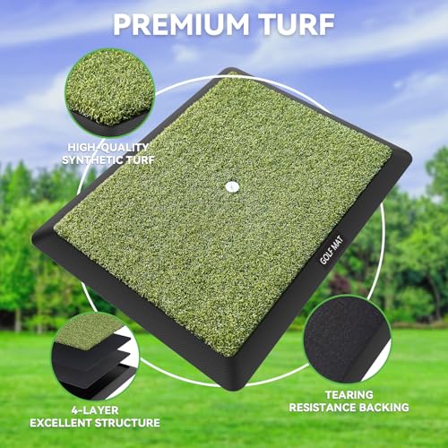 Golf Mat Artificial Turf | Golf Mats Practice Indoor & Outdoor | Golf Training/Hitting/Chipping Mat for Swing | Golf Gifts for Men with 3 Replaceable Golf Mat 16″x12″