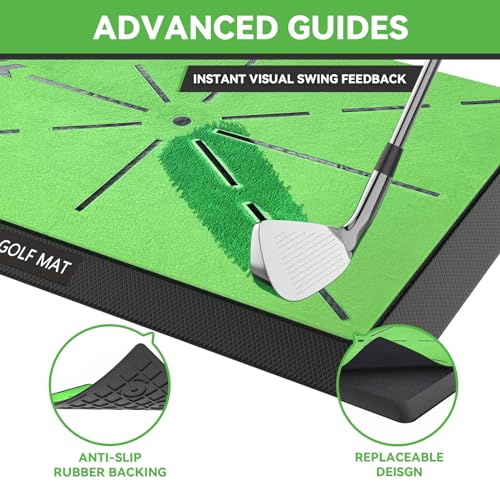 【Replaceable Design】JSPOTIB Golf Impact Training Mat features an interchangeable design with premium artificial turf fairway mat and path feedback velvet mats to improve durability and stability during training. It can be used for a variety of training styles, greatly reducing costs