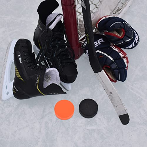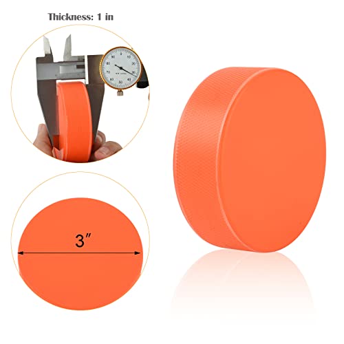 Set of 2 Ice Hockey Puck, Ice Hockey Ball for Practice and Training. 3” Diameter, 1” Thickness, Black and Orange Color.
