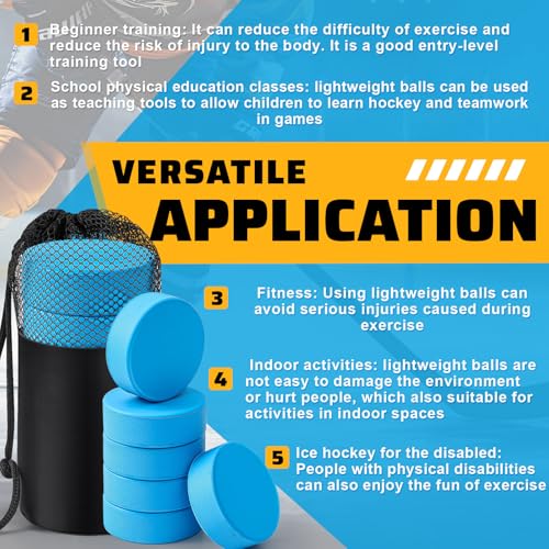 Practical Training Kit: the package includes 6 pieces of 4 oz lightweight hockey pucks, ensuring that you’re ready for multiple rounds of training; The pucks are innovatively designed to meet the rigorous demands of many hockey training sessions; What’s more, the set comes with 1 mesh carrying bag which ensures easy carrying and organization