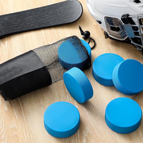 ShinyRelief 6 Pack Lightweight Ice Hockey Pucks Light Training Puck with Mesh Carrying Bag Lightweight Hockey Pucks Official Size for Stick Handling and Training,Blue,4 oz
