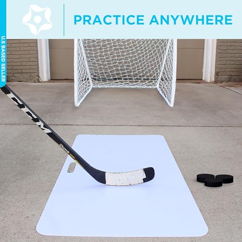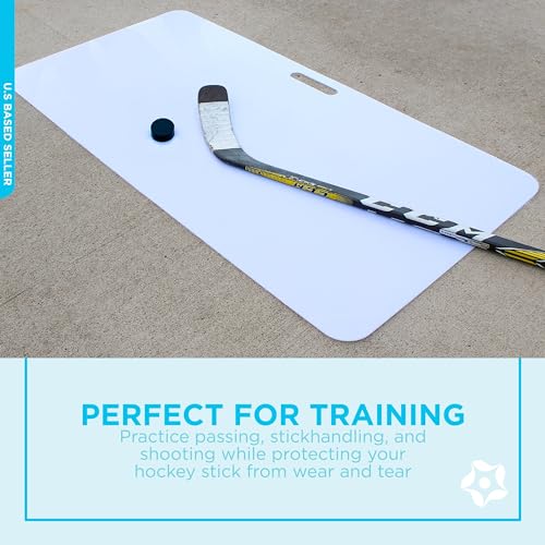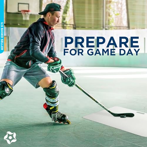 SAFE, PORTABLE, AND EASY TO USE: Take advantage of the offseason by using this great hockey practice mat – it is portable, easy to store and resistant to harsh weather, water, and UV Rays making it durable and easy to clean from practice wear; While this ice hockey shooting pad is not made for skates, you can use lubrication to create a more ice-like effect to slide better