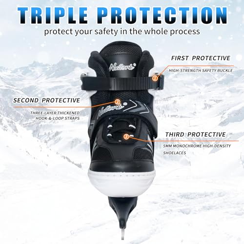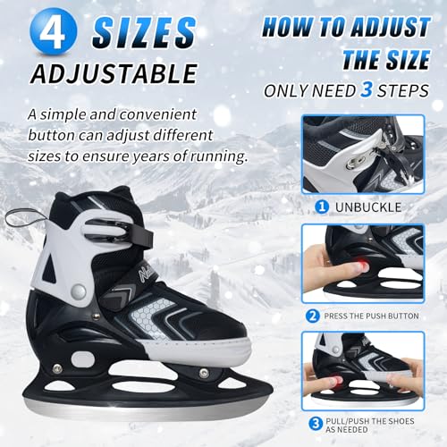 MammyGol Adjustable Ice Skates for Kids Boys Girls, Soft Padding and Reinforced Ankle Support Ice Hockey Skates Suitable for Outdoor and Skating Rinks