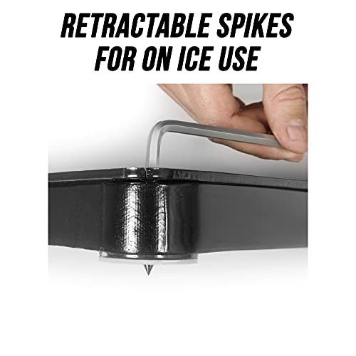EXTREME VERSATILITY: With rubber feet and retractable spikes, this heavy-duty steel puck rebounder can easily be used on a multitude of surfaces such as ice, concrete, asphalt, hockey tiles, and shooting pads