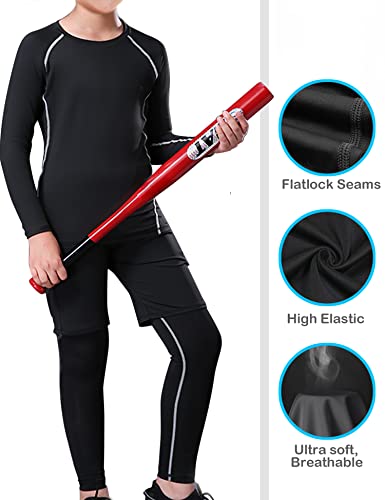 HOPLYNN 3/4 Pack Youth Boy’s Compression Pants Leggings Tights Athletic Base Layer Under Pants Gear for Football Sports
