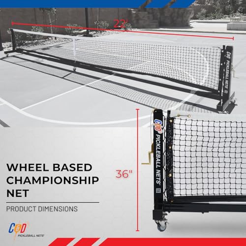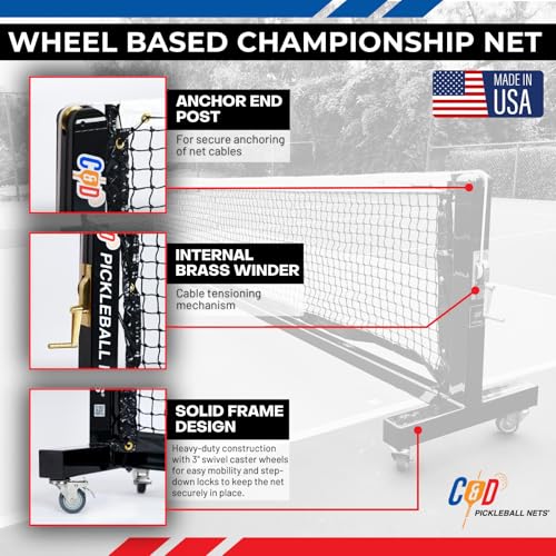 C & D Pickleball Nets Wheel Based Championship Net with Heavy Duty Steel Frame, Adjustable Tension, Indoor/Outdoor Use, 10-Year Warranty