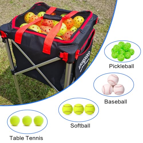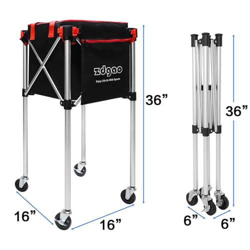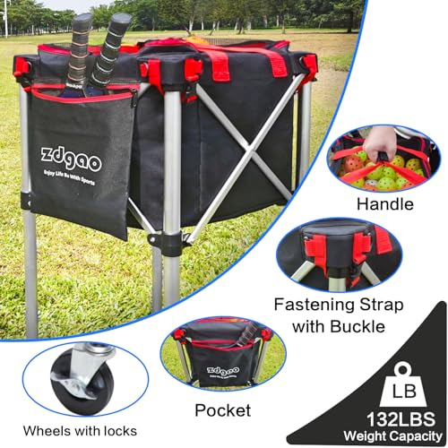 LARGE CAPACITY: Zdgao tennis ball cart with a large capacity bag can hold up to 180 tennis balls/160 pickleballs. The side pocket can hold your phones, pickleball paddles/tennis paddles and so on. The zipper design won’t let your ball fall out